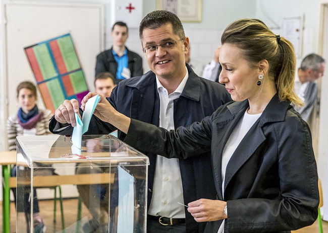 Јеремић је на гласање дошао у пратњи супруге Наташе.