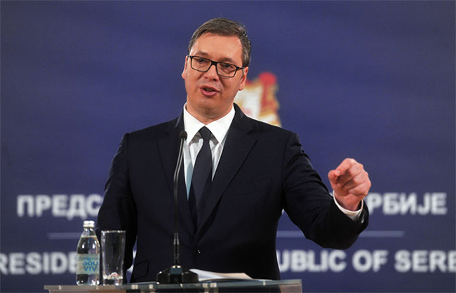 ПРЕДСЕДНИК Србије Александар Вучић изјавио је вечерас да су из Приштине стигле две лоше вести, да остају при таксама док Србија не призна независност Косова и да ће формирати војску, што је сигнал катастрофе уколико неко не обузда Приштину.