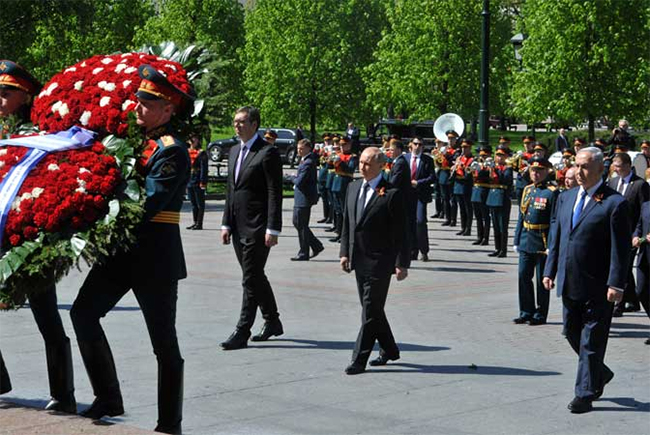 ПРЕДСЕДНИК Србије је данас, након што је заједно са председником Русије Владимиром Путином и премијером Израела Бењамином Нетањахуом положио венце на споменик Незнаном јунаку поводом Дана победе, уз звуке и српске химне, рекао да је то осећај који је тешко описати и да је срећан што је наша земља уважена на тако величанствен начин.