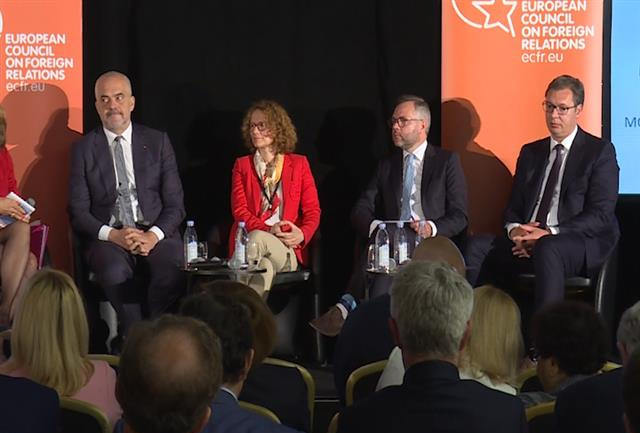 Наиме, дебата на панелу Европског савета за међународне односе, на којем је и он учествовао, кретала се између песимизма албанског премијера Едија Раме и македонске министарке одбране Радмиле Шекеринске и оптимизма немачког државног секретара Микаела Рота.