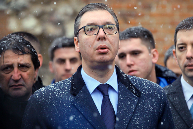 „Космет је део територије Србије по Уставу, имамо посебна правила, али и други морају да их поштују, а то је да нема дугих цеви и да нема оружане силе на северу Косова без дозволе локалне заједнице у складу са Бриселским споразумом и актима које смо потписали и договорили са NATO. Ако се то деси, онда ми морамо да видимо шта радимо како бисмо заштитили наш народ. Ја нисам такву одлуку донео. Да јесам, били бисте упознати, иако имам уставно овлашћење да такву одлуку донесем, а надам се да нећу никада и све ћу да дам од себе да је никад не донесем. А да ли је то једна од могућности коју увек разматран када је српски народ угрожен? Подразумева се, то је моја уставна могућност, уставно право и уставна обавеза кад су земља и српски народ угрожени”, рекао је српски председник.