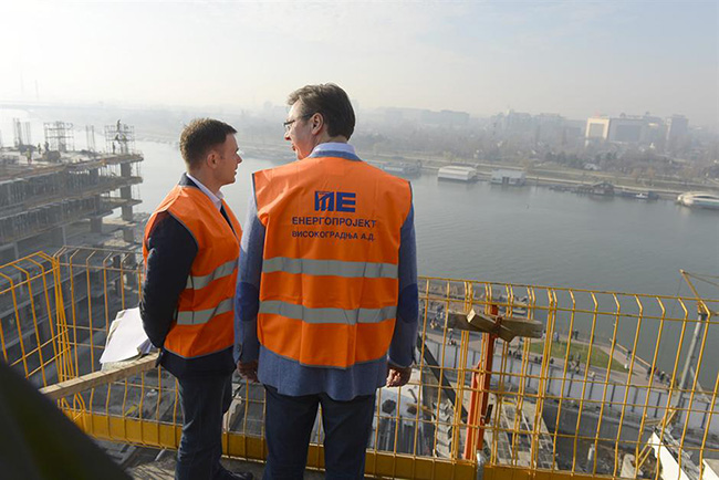 „Сваког дана радници из свих делова Србије, чини ми се да Енергопројект изводи радове, раде имају редовна примања и задовољни су, и срећни су што граде и будућност и Београда Србије”, рекао је Вучић.