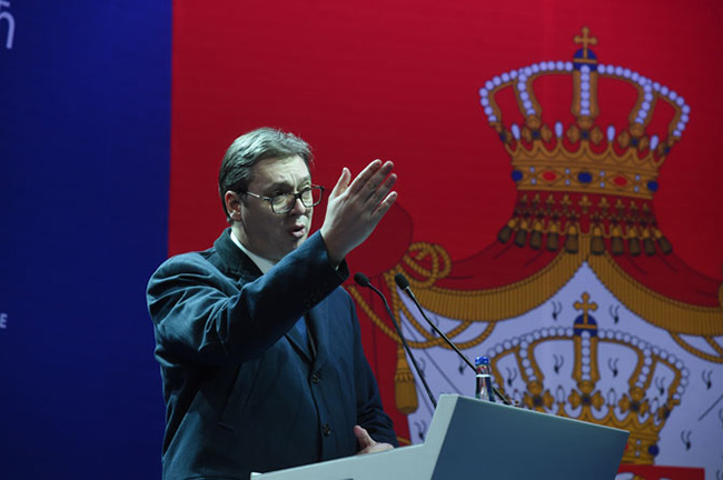 „Ја сам овде да бих показао да Србија гледа и иде у будућност и да они који желе да је врате у прошлост у томе неће моћи да је спрече, победићемо их чисто као и увек”, поручио је председник.