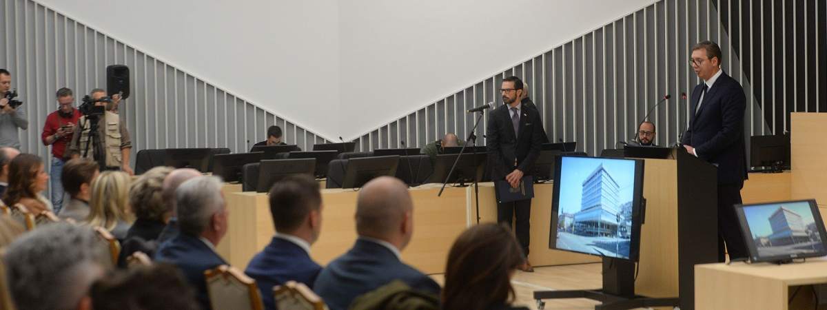Вучић је навео да је поносан на то што је посао око реконструкције Палате правде завршен на добар начин и најавио да ће држава наставити да обнавља објекте јер је то најбоља слика и прилика напретка читавог друштва и побољшања стандарда.