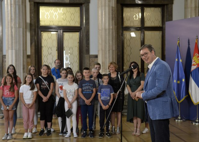 Вучић је запитао децу да ли им се свиђа Београд и поручио им да ће то увек бити за њих главни град. Председник је рекао деци да треба више да читају и поручио у шали "књигу у шаке".