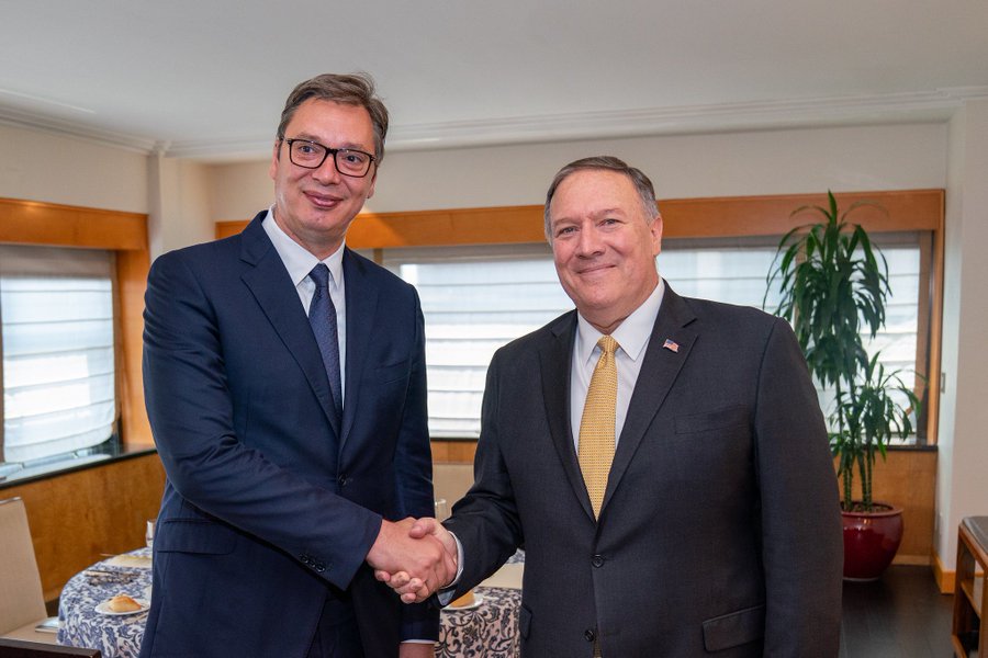„Нормализација односа са Косовом ће ојачати стабилност и просперитет Србије, Западног Балкана и трансатлантске заједнице”, навео је Помпео.