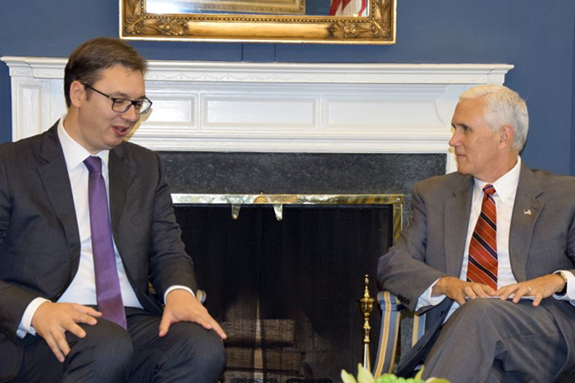 - Председник Србије открио да је са потпредседником САД Мајком Пенсом разговарао и о очувању територијалног интегритета Србије („ми из нашег угла, наше земље“), и о томе како Америка доживљава улогу Русије и како то ми чинимо. Нагласио је да не жели да улази у детаље разговора о односу према Криму и Косову, јер би неко могао да извлачи погрешне закључке