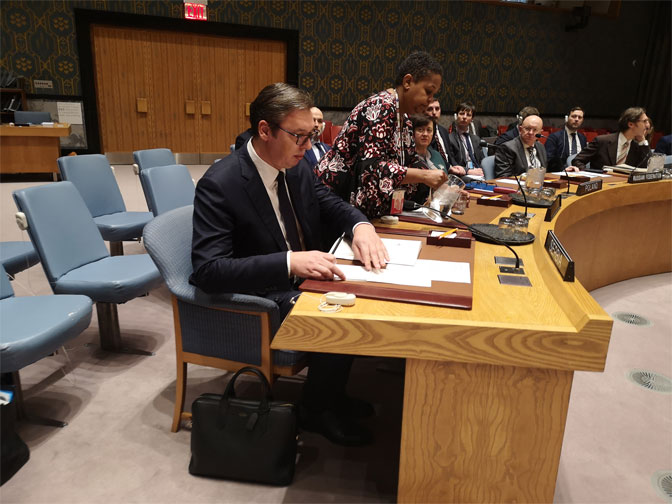 ПРЕДСЕДНИК Србије истакао је, на хитно сазваној седници Савета безбедности УН, поводом ситуације на Косову, да Приштина није испунила обавезе из споразума које је потписала у Бриселу, као и да крши Цефта споразум и ССП.