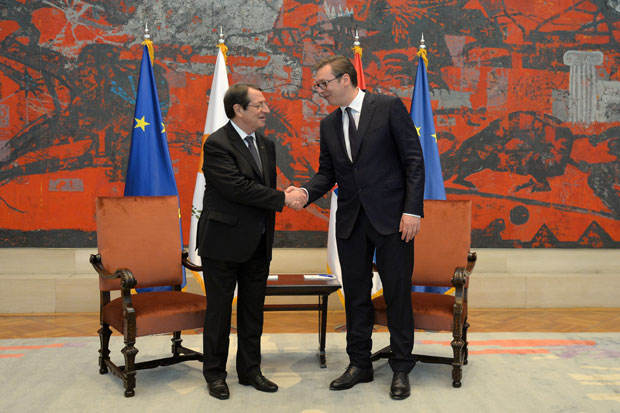 Вучић је, на заједничкој конференцији за новинаре са кипарским председником Никосом Анастасијадисом, подвукао да је Кипар једна од чланица ЕУ која најчвршће и најјасније штити међународно право и територијални интегритет Србије, и на томе захвалио председнику Кипра као и на подршци коју та земља пружа Србији на путу ка ЕУ.