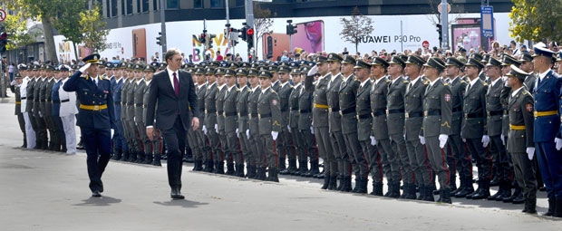 Он је на промоцији најмлађе класе официра Војске Србије (ВС) рекао да ВС "великом брзином обнавља своју снагу" и да је спремна да самостално заштити наше границе и да одврати сваки покушај напада на наш народ "ма где да је угрожен".