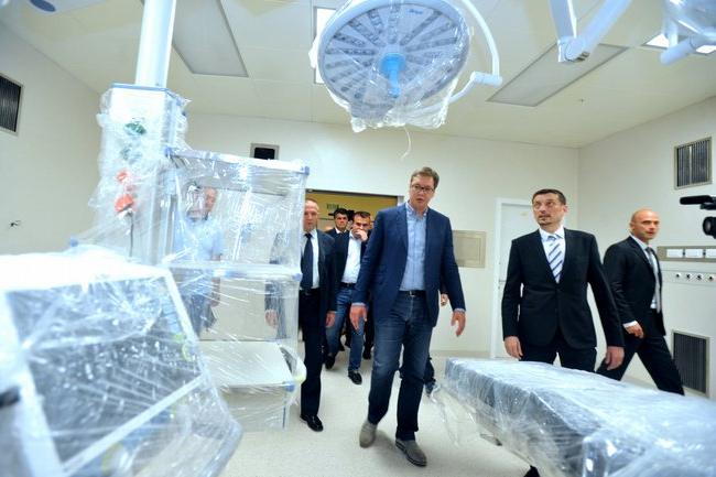 Вучић је са министром здравља Златибором Лончарем и руководством града у току поподнева обишао радове на реконструкцији Дома здравља и нови Клинички центар.
