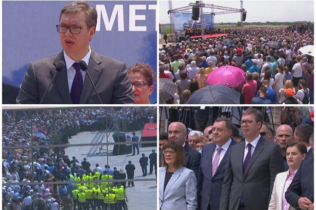 "То је нова Србија коју стварамо, Србија рада и Србија која побеђује, која жели да помогне свом народу не угрожавајући било кога другог", казао је Вучић.