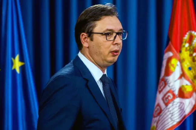 „Да ли ћу бити председник 2025? Нећу”, рекао је Вучић Bloomberg-у библиотеци Председништва у центру Београда.