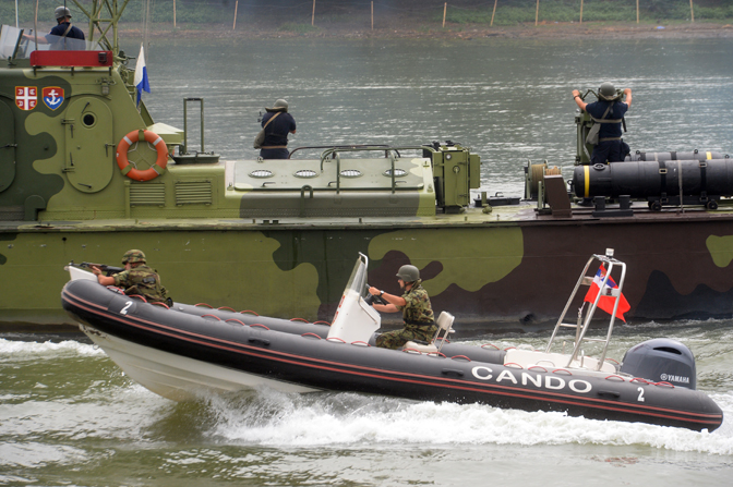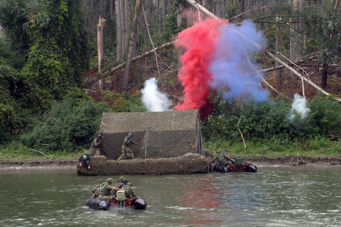 Затим, учесници ће приказати артиљеријску припрему напада, речни десант, попречно превожење борбене технике преко реке и увођење у борбу, напад на командни брод непријатеља, разминирање пловног пута, бродска, противбродска и пешадијска дејства на циљеве на копну и води и формирање понтонског моста и прелаз борбене групе преко моста.