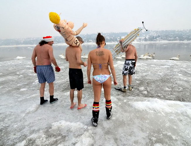 НОВИ САД, (ФоНет) - Члановима удружења Панонски панкери и Žiletpegla.com хладноћа није нимало сметала, па су се окупили на Штранду у купаћим костимима.