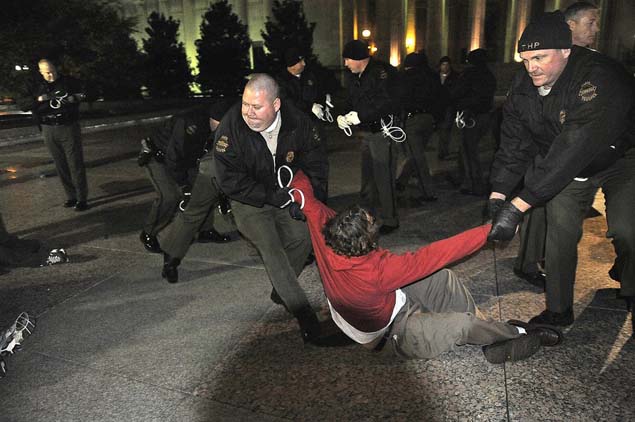 НЕШВИЛ, (ФоНет) - Полиција америчке савезне државе Тенеси другу ноћ заредом хапси демонстранте покрета Окупирајмо Вол стрит због кршења полицијског сата који је увео гувернер Бил Хаслам.