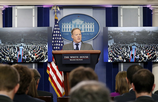 Спајсер је нагласио да је Трампова инаугурација била обављена пред највећим бројем људи у историји САД. Притом је навео да је потпуно био попуњен простор који прима 720.000 људи, а да је вашингтонски метро превезао према Пенсилванија авенији 420.000, док је у време Обамне друге инаугурације превезао – 100.000 мање.