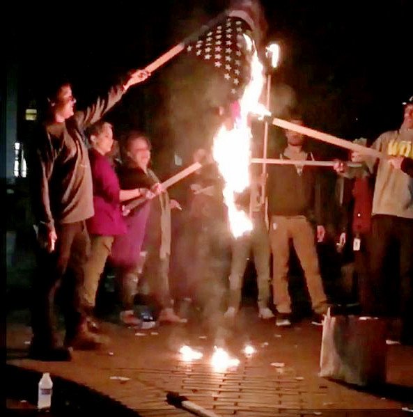 Спаљивање државне заставе је на свим досадашњим протестима присталица Хилари Клинтон постало нека врста традиције.