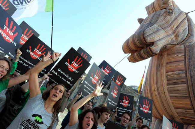 Демонстрирало се и у више градова Немачке. Према подацима листа Zeit, у Немачкој одавно није било тако масовних протеста, а у Берлину - демонстранти су направили неку врсту Тројанског коња. Са намером да на тај начин симболички покажу каква опасност је за Европу споразум о зони слободне трговине са Северном Америком.