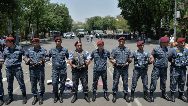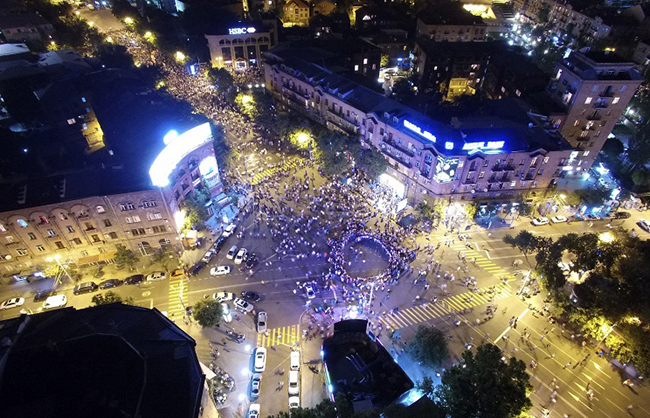 Неколико стотина демонстраната – иза којих стоје америчке тајне службе – поново за протест користе недавно поскупљење струје, а булевар су „пресекли“ на истом месту као и пре два месеца. У непосредној близини резиденције председника Републике Јерменије.