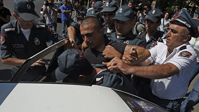 ПРЕМА очекивањима, заоштрила се ситуација у Јеревану где 30 припадника екстремне органзације „Нова Јерменија“ већ три дана у бази полиције држе четири таоца, међу којима су и два висока руководиоца Мнистарства унутрашњих послова.