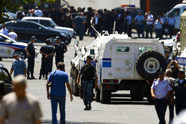 Група од 30 наоружаних јерменских „Американаца“ - неки тврде, додуше, да их је било 17 - упала је у базу полицијског пука код Јеревана и том приликом једног полицајца убила, а петорицу ранила.