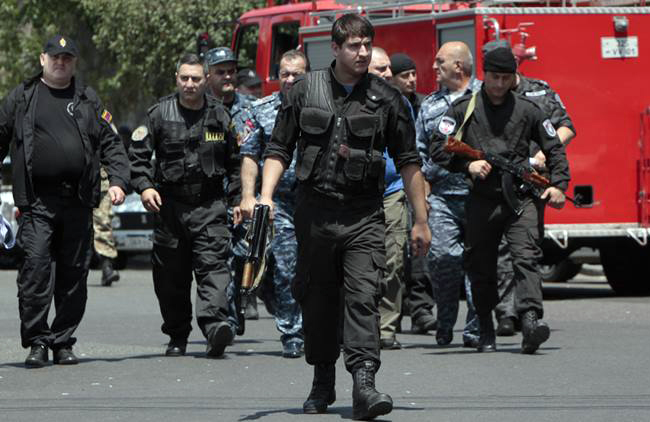 НАОРУЖАНА група јерменских отпораша узела је за таоце двојицу лекара и два медицинска радника којима је полиција дозволила да уђу у базу полицијског пука у коју је упала 17 јула.