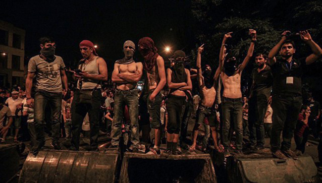 Демонстранти су 20. јула покушали да пробију полицијски кордон и да ослободе групу која припада јерменском Отпору који делује под именом – Фронт јавног спаса Нова Јерменија.