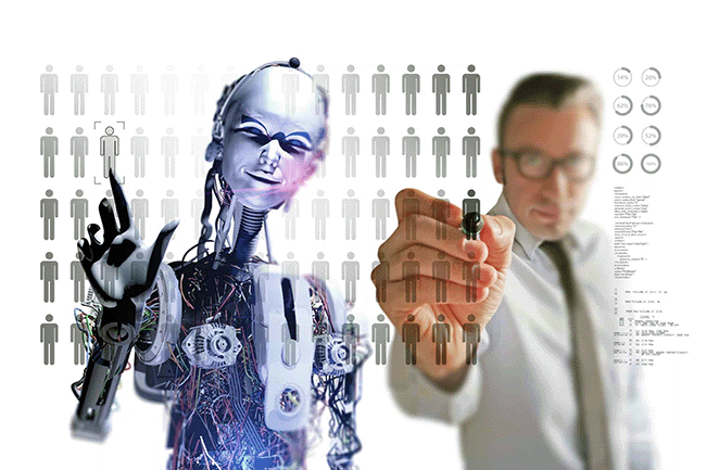 Вештачком интелигенцијом се сматрају сложене машине које не делују само по програму који има је „убачен у главу“, него и да саме себе обучавају и коригују. Чак и да чине и оно што није било у њиховом првобитном програму.