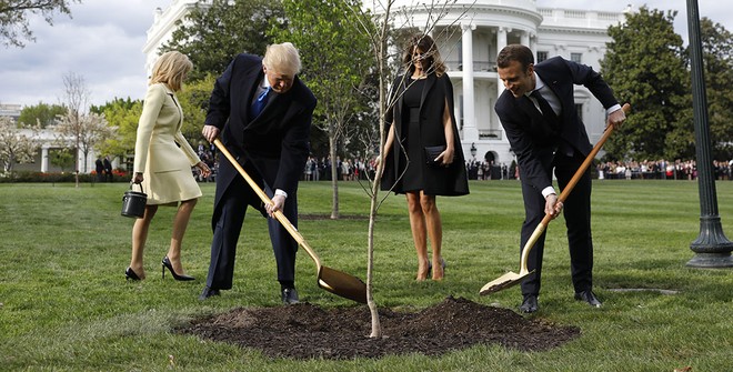 Трамп и његов високи гост посадили су га сложно у априлу 2018-те. У присуству својих супруга.