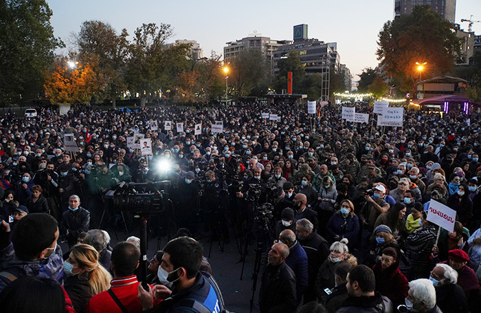 * Бивши председник владе Јерменије Грант Багратјан окупљенима је рекао: „Ако желимо нешто да променимо - Пашињан мора да оде. Онај ко је потписао капитулацију - не може да настави да влада нашом земљом!“