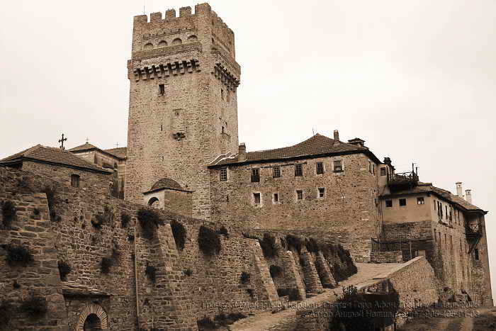 Једна Богородичина икона у саборном храму, руске израде, коју поклоницима с поносом показују, пренесена је у манастир управо из једне оближње келије у којој су обитавали руски монаси. (То су најдаље келије на југу са североисточне стране Атоса, докле су руски калуђери стигли у свом ширењу Гором Атонском на прелазу из XIX у XX столеће.)