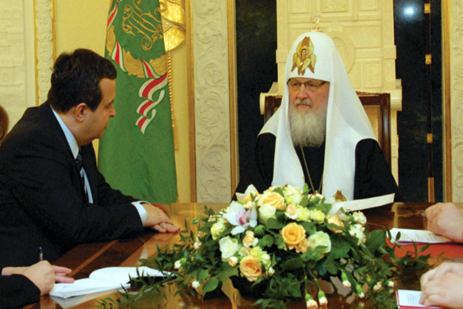 Дачић је има и посебан састанак са патријархом Кирилом. Патријарх московски и све Русије Кирил пренео је Дачићу подршку и солидарност Руске православне цркве, народа и државе о принципијелним питањима када је реч о проблемима с којима се Србија суочава. Посебно у очувању Косова и Метохије!