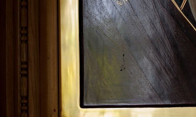 У понедељак је по благослову епископа Панкратија фотографисано мироточење иконе, након тога стакло је поново било враћено на своје место.