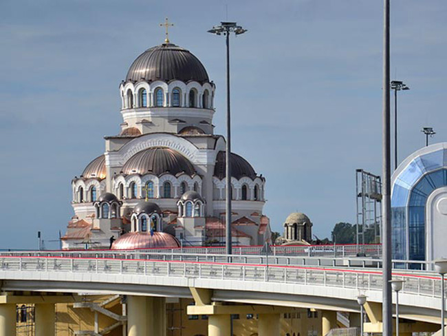 Храм ће бити једна од главних туристичких атракција Олимпијског парка: изграђен је у византијском стилу, неуобичајеном за Сочи.
