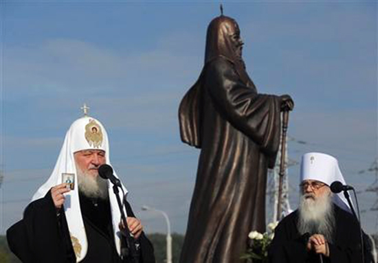 Бронзани споменик је постављен испред храма Свих Светих у Минску, а открио га је садашњи руски патријарх Кирил.