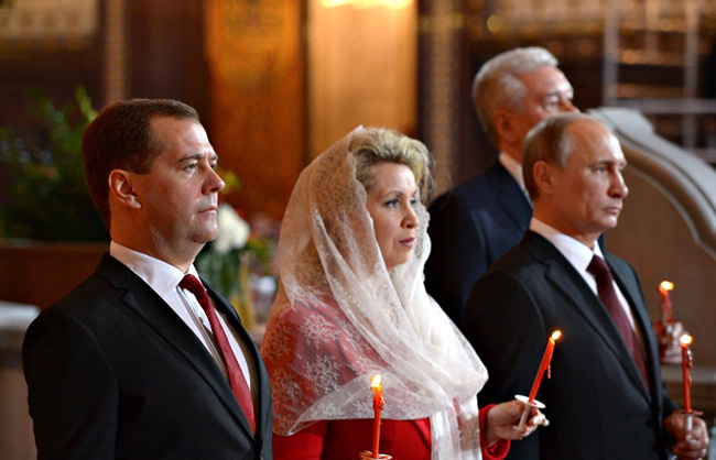 Путин и Медведев су претходних година о Божићу и Васкрсу посећивали различите храмове. Ноћас – вероватно – и на овај начин демонстрирају државни јединство у великој бици за обједињавање Руског Света и далекосежну промену односа у свету.