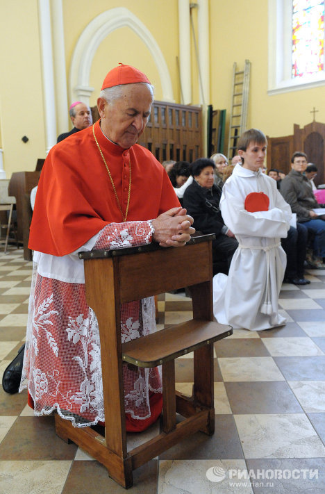КАРДИНАЛ словачког порекла Јозеф Томко – који борави у Москви поводом прославе 100-годишњице освештања московске католичке катедрале Непорочног Зачећа Пресвете Дјеве Марије - пренео је руском патријарху Кирилу поздраве римског папе Бенедикта Шеснаестог.