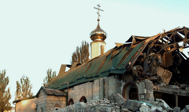 Патријарх московски и целе Руси Кирил саопштио је средином новембра да је око 50 верских објеката Руске православне цркве на југоистоку Украјине „или потпуно уништено, или су јако оштећени у нападима украјинске артиљерије“.