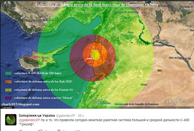 С-400 око руске војне базе Хмејмим (у Сирији)