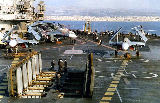 - Након што је команда Ратне морнарице САД донела одлуку да пред обале Сирије пошаље додатну ударну групу на челу са атомским носачем авиона USS „Dwight D. Eisenhower“ - флота РМ Русије повукла је парирајући потез. Укључила је носач авиона, тешку ракетну крстарицу „Адмирал Кузњецов“ у ратну операцију на територији Сирије