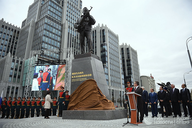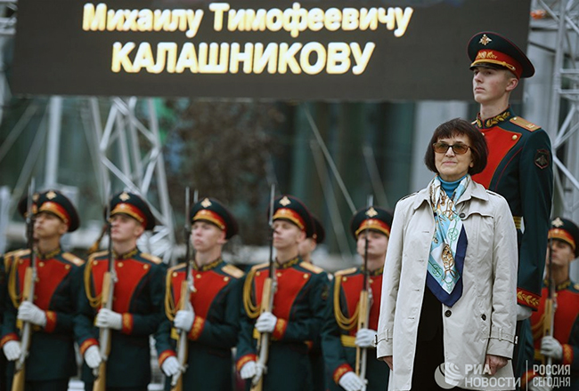 - Министар културе РФ Владимир МЕДИНСКИ на пригодној церемонији оценио: „Михаил Калашњиков је у себи спојио најбоље црте својствене Русима, а његов чувени аутомат је својеврсни руски културни бренд. Калашњиков је у одређеној мери Кулибин XX века. Био је необично природно надарен, са организационим талентом, али једноставан и поштен. Захваљујући свему томе, успео је да створи цео низ оружја која су бранила Отаџбину. Није случајно што се неколико његових оружја налазе у Оружејној палати, заједно са најбољим моделима руског наоружања“