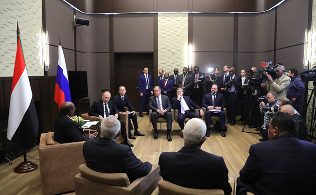 • Судански председник тражење оружја од Москве објаснио и овим речима: „По нашим сазнањима, Сједињене Државе желе да поделе Судан на пет држава. Вашингтон је већ разорио арапски свет. Посебно је уништио Агванистан, Ирак, Сирију и Јемен. Судан је такође суочен са великом завером и великим притиском Сједињених Држава”