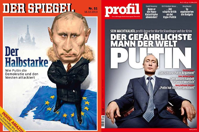 Прво место по непријатељским текстовима против Русије у 2014. години припада Немачкој. Она је по томе неприкосновени лидер: на један неутрални чланак долази 7,5 негативних, а број негативних чланака месечно премашује 500. Док у периоду од 2010. до 2012. године индекс агресивности Немачке није био већи од 1, а то је за Запад нормална појава, тј. могло се сматрати да је однос Немачке према Русији био прилично лојалан, у 2014. години приметно је померање ка политици Меркелове.