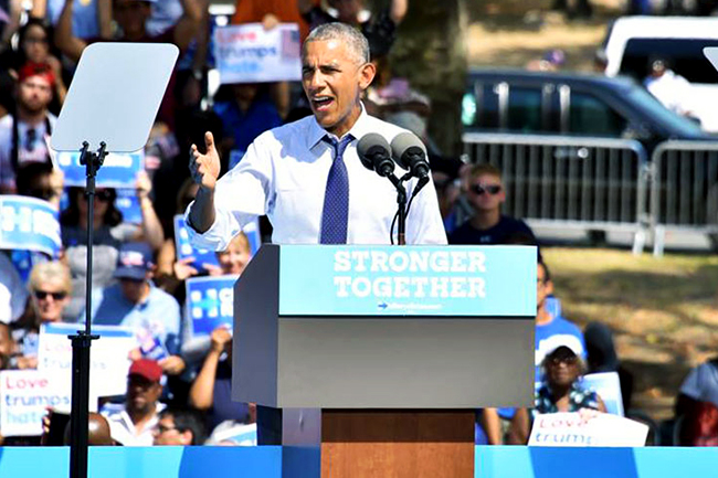 Обама је у Филаделфији подржао председничку кандидатуру Хилари Клинтон и критиковао Трампа који је одбацио тврдње да Русија може утицати на исход председничких избора у САД.