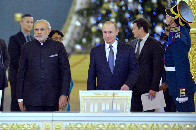 Нареднра Моди и Владимир Путин