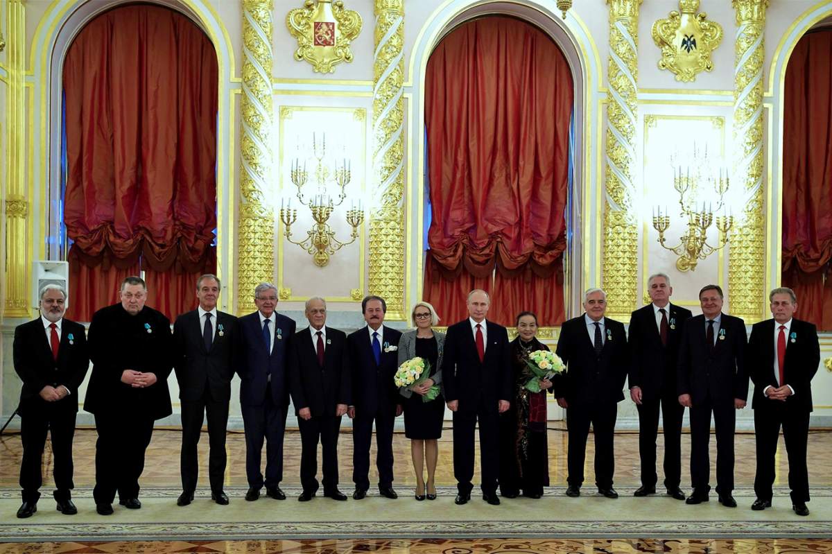Председник РФ је на пријему уручио сународницима награде за јачање јединства росијске нације и ордене пријатељства већем броју странаца.
