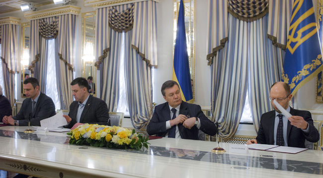 „На молбу украјинских власти и Европске уније, преговорима у Кијеву се у одређеној етапи прикључио и омбудсман РФ за људска права Владимир Лукин. У моменту његовог прикључивања преговорима текст споразума био је већ у знатној мери готов а наш представник је полазио од тога да украјинска власт и опозиција треба да нађу сагласје међу собом.