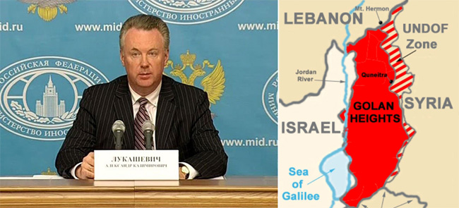 „Председник Владимир Путин је посебно истакао да је, с обзиром на изузетно сложену ситуацију на Голанској висоравни, врх РФ донео одлуку, уколико та одлука наиђе на разумевање земаља региона и УН, да се тамо пошаље батаљон руских миротвораца”, истакао је Лукашевич.