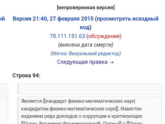 МК je такође открио: да је IP адреса аутора промене о смрти Њемцова регистрована у руском граду Иваново.